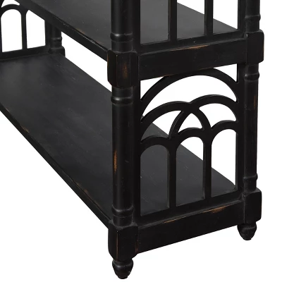 This three tier console table from the Signature Collection by StyleCraft Home Collection serves as the ideal centerpiece in your living room, foyer, or bedroom. Crafted from a combination of woods, this table is the perfect choice to showcase your pictures and home decor trinkets. The all-black finish with distressing, will complement any existing decor. Due to lighting and monitor differences, actual colors and finishes may vary slightly from what appears online.