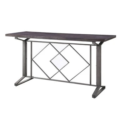 Transform a boring traditional dining room into an industrial home bar that allows your friends to eat and drink to their heart’s content. The Evangeline Counter Height Table employs a sense of industrial rawness in every detail, including distressed textures, metal structure, minimalistic design. The rectangular wooden tabletop is finished in a salvaged brown to form a weathered surface.