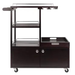 This hardwood walnut breakfast table is the perfect choice for a small kitchen. Simple style and clean straight lines in a warm antique walnut finish. Use it for extra workspace while preparing meals, and add counter height stools to create a dining area. It features two storage drawers for silverware or other kitchen items and blends in with almost any décor. The table wipes clean easily with a damp cloth. Table assembled size is 39.37″W x 19.69″D x 33.27″H. Inside drawer dimension is 11.34″W x 13.19″D x 3.54″H. Made with combination of solid and composite wood in warm walnut finish. Assembly Required.
