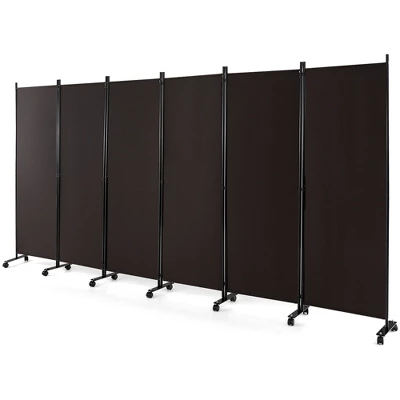 - 6-Panel Room Divider: Individual screen size is: 22″ x 68″, overall size: 132″ x 68″. This room divider can help you use the space in your room efficiently. It can create a quiet and undisturbed private corner for you at any time. This helps you to concentrate on your work or study. Also, it can help create a temporary bedroom or study in the living room.^Lockable Universal Wheels: The bottom of this privacy screen features 14 universal wheels, which makes our screen very easy to move from room to room. It is also easy to operate when you need to fold the screen. In addition, the universal wheels can be locked to prevent the screen from sliding after being placed in your designated position.^Sturdy and Durable Material: The folding privacy screen is made of high quality material. Its surface is not only wear-resistant, but also easy to clean and maintain. In addition, the dense woven fibers make the screen can better protect your privacy. The frame and base made of metal are strong and durable, with strong stability and load-bearing capacity. ^Free Combination Screen: This room divider includes 6 separate units. You can use them separately or join them into a larger whole. 15 connecting clasps will be included in the package to facilitate you to connect each page of the screen. The screen can be folded 360 degrees or can be placed into various shapes: such as L-shaped, W-shaped, C-shaped, etc.^Multiple Applications: The 6-panel screen with wheels not only provides you with a privacy space, but also can be placed in front of the window to block the sun. The portable design allows you to easily apply it anywhere, like bedroom, bathroom, office, school or hospital. With the help of this practical screen, you can create a private space and enjoy your time.