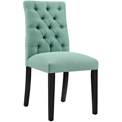 Bestow elegance with the Duchess Dining Chair. Chic and luxurious, Duchess features a stylish curvy form, richly tufted button back, dense foam padding, fine fabric upholstery, and wood legs topped with non-marking foot caps. Duchess is the perfect choice for hosting elegant dinners. Also popular in living rooms as an accent chair. Resonate grace and charm with a dining chair perfect for the modern home.