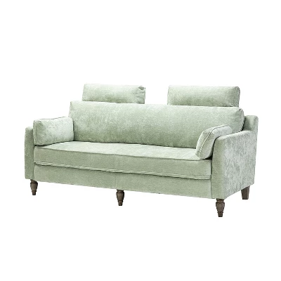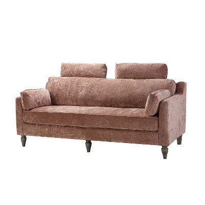 The exceptional comfort of our sofa lets you create an intimate conversation area or an expansive seating arrangement in your home. Incorporating the simple contemporary curves effortlessly with traditional classic details, this statement-making piece with supportive headrests, removable back cushion, two toss pillows, and comfortable velvet upholstery brings unforgettable enjoyment. The tasteful turned legs hold the solid and manufactured wood frame with padded foam and polyester fiber in a high grade, showing a perfect combination of sturdy structure and extreme comfort. Plus, it comes awash with optional solid hues, allowing it to blend effortlessly with your color scheme. This stunning sofa will definitely bring your living space the sophistication that you are looking for.