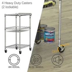 Costway 3-Tier Utility Cart Heavy Duty Wire Rolling Cart W/Handle Bar Storage Trolley