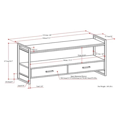 - DIMENSIONS: 18″ D x 60″ W x 26.5″ H