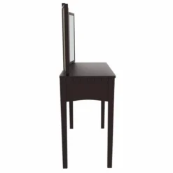 Wooden Vanity Table With 3 Panel Mirror And Padded Stool Brown – Benzara