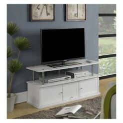 Designs2Go With 3 Cabinets TV Stand For TVs Up To 60″ White – Breighton Home