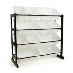 Ladder Toy Storage Organizer With 12 Storage Bins Espresso/White – Humble Crew