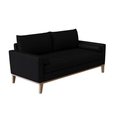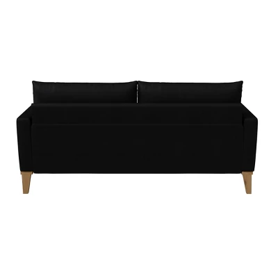 Let the classically designed Traynor Sofa by Lifestyle Solutions add comfortable and luxurious seating to your living space. Each piece is crafted with Acacia wood and upholstered in quality polyester fabric. It features angled back cushions, rolled side cushions, and exquisite rolled arms. The seat cushions include a high-density foam core and are supported by a Dacron-wrapped frame to provide a soft and supportive seat. The light brown rubber wood legs complete the look.