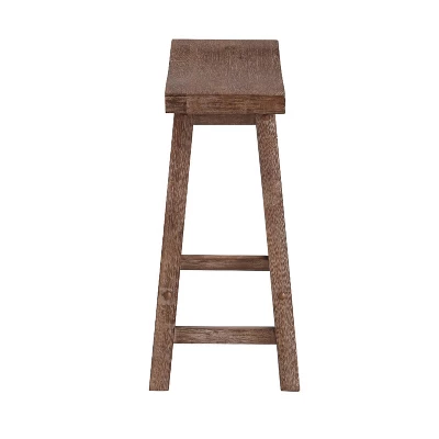 Add casual seating to your home by bringing in this transitional style stool, featuring a saddle seat and showcases grain details. Constructed sturdily from solid hard wood, it is accented with a brown wire brush finish. It is made up of brown and is brown in color.Assembly is required in the product.