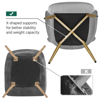 - 【Sturdy and Durable】Our accent chair features an E1-compliant engineered wood frame, soft velvet fabric and resilient foam fill. Founded on X-shaped metal legs, this tufted armchair can hold up to 125 kg.